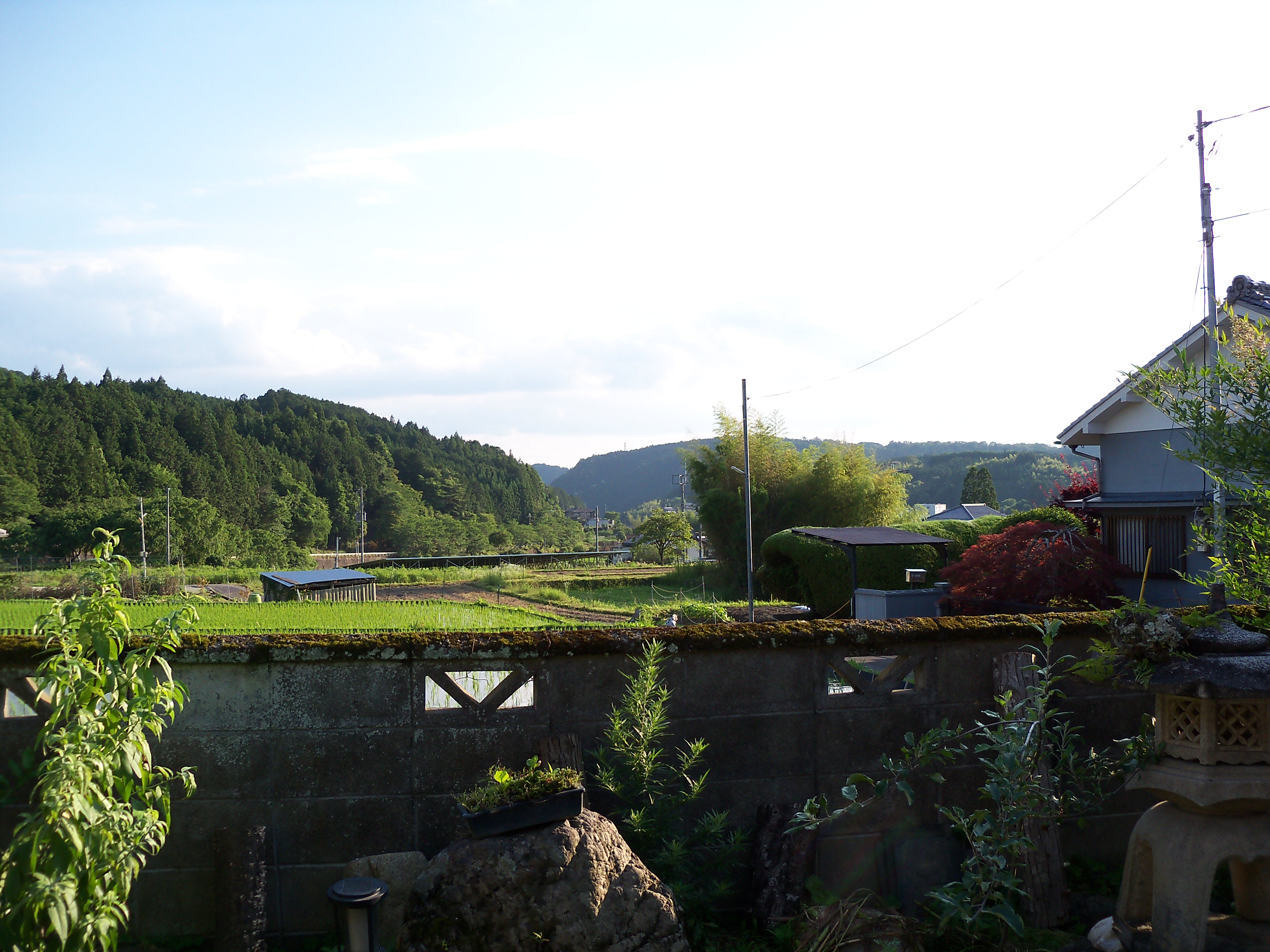 From the garden, you can see rice fields and mountains.