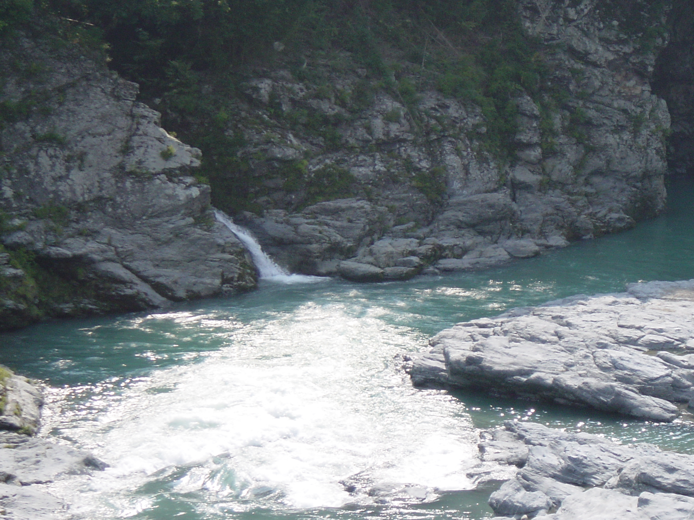 A deep pool where the stream becomes a waterfall and enters the Yoshino River.